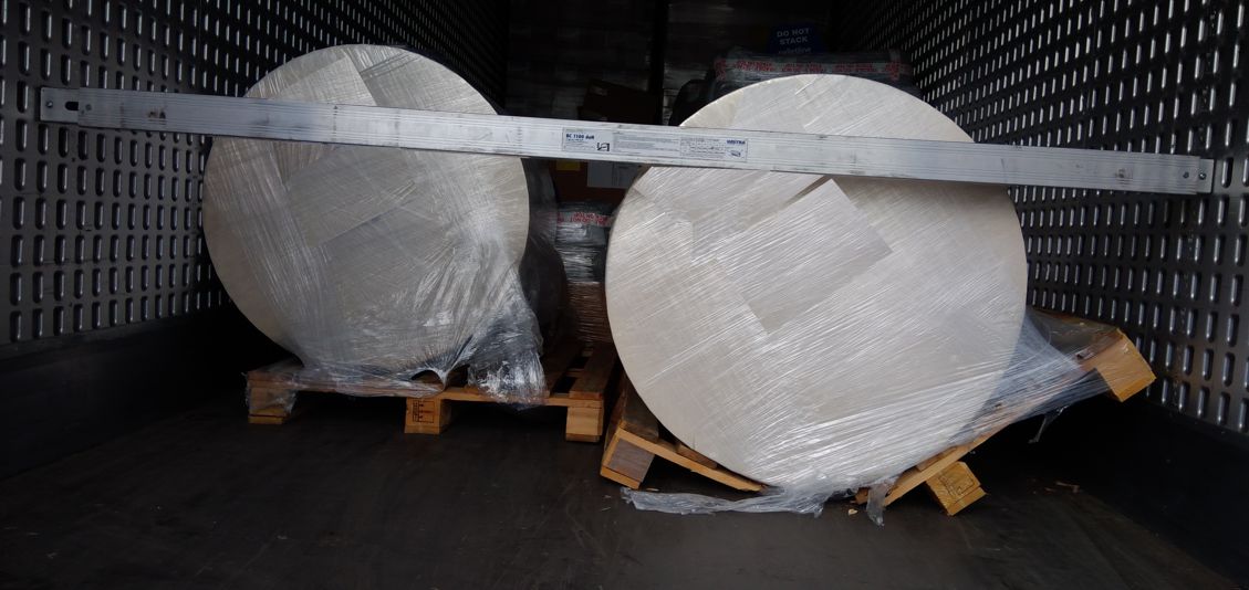Bij een klant trok ik de achterdeuren open om 2 pallets met 5 rollen hoog resolutie druk papier te lossen. En ik trof de rollen aan zoals op de foto. De pallets stonden weleens waar correct in de wagen. Maar zijn een keer toch vanaf de zijkant opgepakt. Als je dit met deze vracht doet dan breekt je aan de onderzijde van de pallet een cruciale folie laag die voorkomt dat rollen kunnen gaan rollen. Deze folie laag is gebroken doordat een pompwagen aan de verkeerde kant die pallet heeft opgepakt. en zo hebben de rollen speling gekregen. De linkse pallet is heel gebleven. De rechtse pallet is gebroken omdat daar 3 rollen op liggen en zwaarder is dan de linkse waar 2 rollen oplagen.